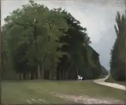 Born the son of a mathematics professor, Hill grew up in the university town of Lund in southern Sweden and had to strike out on his own as a landscape painter against his father's wishes.[2] After studying at the Royal Swedish Academy of Fine Arts, he went to France. In the summer of 1874, he travelled to the village of Barbizon south of Paris, which was a thriving artists' colony. Both the Barbizon School and Camille Corot had a decisive influence on him.[1]