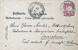 Postcard to a priest as a passenger of SS Bohemia (Stangen's special trip to Jerusalem for the opening of the Church of the Redeemer in 1898.)