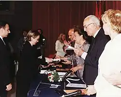 Carles and Sofia receiving a UNICEF award from Margarita de Borbón