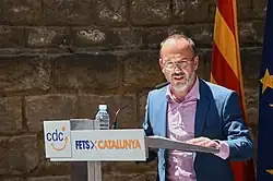 Campuzano contested the 1996 general election as a CiU candidate in the Province of Barcelona and was elected to the Congress of Deputies.[9][10] He was re-elected at the 2000, 2004, 2008, 2011, 2015 and 2016 general elections.[11][12][13][14][15][16][17][18][19][20][21][22] Campuzano has been spokesperson for the Catalan European Democratic Party (PDeCAT) in the Congress of Deputies since April 2017 and was a member of the Spanish delegation in the Parliamentary Assembly of the Organization for Security and Cooperation in Europe (OSCE).[1][4][23] Despite having been proposed by its party to be the main candidate of Together for Catalonia to seek the April 2019 Spanish general election,[24] he wouldn't be chosen in the end,[25] being replaced by Laura Borràs as the main candidate by Barcelona.[26] Eventually, Carles Campuzano announced that he would be leaving the PDeCAT because of differences on its political ideology and project.[27][28]