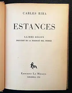 - ^ "Carles Riba English | Associació d'Escriptors en Llengua Catalana". www.escriptors.cat. Retrieved 2019-07-09.