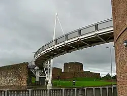 Short lengths of the North and West Walls run south from the castle to a city centre bypass that separates the castle from the city centre. The construction of the bypass required the existing gap in the West Walls to be widened and the surviving fragment of the North Walls to be truncated further. The gap in the West Walls includes the site of Irishgate and this is commemorated by a modern footbridge.[10]