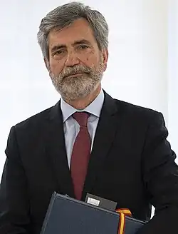Carlos Lesmes Serrano (born 10 June 1958) is a Spanish magistrate and prosecutor who served as president of the Supreme Court and president of the General Council of the Judiciary (CGPJ) from 2013 to 2022.[1] Since December 2018, he served in acting capacity in both posts, as his mandate expired at the time and the renovation of the CGPJ was blocked from then on. He is seen as a Conservative jurist with a religious background.[2]