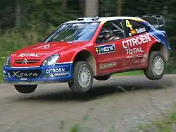 Effectively frozen out along with McRae at Ford, he along with the Scot moved to Citroën for the 2003, during which he scored one win in Turkey – which was the first gravel event win for Citroën Xsara WRC – and finished third in the championship. Sainz continued with the team in the 2004 season, and scored his final world rally victory at the 2004 Rally Argentina. During the Rally Catalonia 2004, after announcing his retirement, Sainz was considered by drivers, codrivers and directors of the official teams, as the best rally driver of history.[17] In the championship, Sainz finished fourth, after missing out the final rally in Australia, due an accident during pre-event recce.[18]