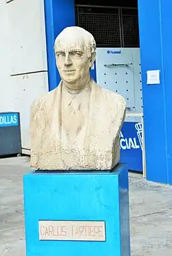 During his presidency, Real Oviedo became the first Asturian club to achieve promotion to Primera División, by achieving the Segunda División, followed by securing two third-place finishes in the top tier during the 1934–35 and 1935–36 seasons.[3] In his honor, the old stadium in Buenavista was renamed Estadio Carlos Tartiere on 22 June 1958,[4] a name that was retained for the new stadium, Estadio Municipal Carlos Tartiere.