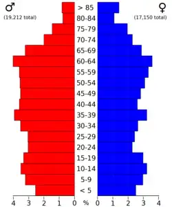 | 2023 (est.) | 36,825 | [16] | 1.7% |