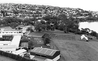Carmel College and Lake Pupuke seen from North Shore Hospital (1997)