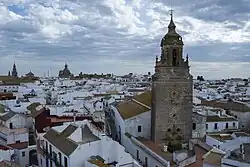 - Church of San Pedro (15th century). Its tower is a medieval replica of the Giralda bell tower of the Cathedral of Seville.