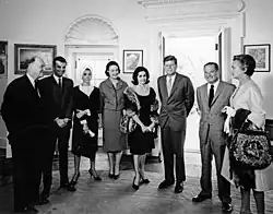 Lawrence, a registered Democrat, accompanied Democratic National Committee (DNC) Chairman John Bailey, DNC Vice-chairwoman Margaret B. Price, DNC Secretary Dorothy Vredenburgh Bush, Lena Horne, Richard Adler, and Sidney Salomon on a visit with President John F. Kennedy at The White House on November 20, 1963, two days before his assassination.[22]