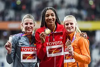 Carolin Schäfer (born 5 December 1991)[2] is a German athlete who specialises in the heptathlon. She won the silver medal in the event at the 2017 World Championships in Athletics. Schäfer took bronze at the 2018 European Athletics Championships.