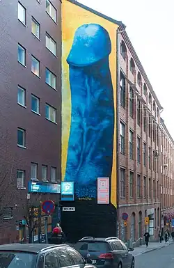 - ^ a b c d "Giant blue penis painted on Stockholm apartment building". The Local SE. 11 April 2018. Archived from the original on 7 October 2022. Retrieved 13 April 2018.