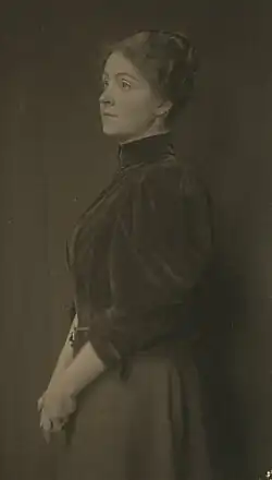 Peart was born in Rosemont, Pennsylvania,[a] into a middle-class family. She was the only child of John Peart and Martha Ann Herr Peart (nee Brenneman). Through her mother, Peart was the half-cousin of American artist and illustrator N. C. Wyeth.[1] Martha was also a direct descendant of Hans Herr, the first ordained Mennonite bishop to emigrate to the American colonies in 1710. This lineage caused the family much pride, as Caroline and her mother often attended Herr family reunions, and Martha served as Vice President of the Hans Herr Memorial Association, when it was established in 1895.[2] Before marrying Martha in 1867, John Peart had fought during the Civil War for the Union Army, serving as sergeant major in the 195th Regiment of the Pennsylvania Volunteer Infantry.[3] After the war, he went into the lumber business in Columbia, which started to boom around 1876-77 and caused the family to move to Philadelphia where they lived on Logan Square at 1901 Vine Street.[4]