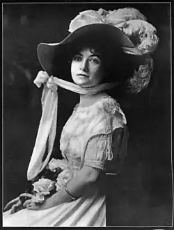 ![]() Carrie Bowman in 1908 when she was appearing in George M. Cohan's The American Idea | |