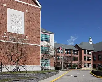 In 1929, approximately two years after residents approved constructing Port Washington High School, the construction was completed and the school opened.[3] This school building would be built adjacent to the district's Flower Hill School.[4]