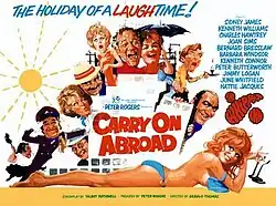 Carry On Abroad is a 1972 British comedy film directed by Gerald Thomas, the 24th release in the series of 31 Carry On films (1958–1992).[1] The film features series regulars Sid James, Kenneth Williams, Joan Sims, Bernard Bresslaw, Barbara Windsor, Kenneth Connor, Peter Butterworth and Hattie Jacques. It was the 23rd and final Carry On appearance for Charles Hawtrey. June Whitfield returned after appearing in Carry On Nurse 13 years earlier. Jimmy Logan and Carol Hawkins made their first of two appearances in the series.