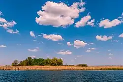 Some areas of water are covered in pond algae.[4] Many rare and autochthonous plants live in the wetland, but also many imported ones. Some representatives of the water plants include water fern, European white water lily, yellow water lily,[9] lax-flowered orchid.[9] Meadow plants are represented by Plumbago, Achillea, wormwood, mallow and meadow sage, and marsh plants by flowering rush, yellow flag iris, water mannagrass, common sweet flag, bulrush,[4] reed,[4] etc.