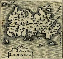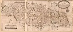 1684 A New and Exact Mapp of the Island of Jamaica Charles Bochart and Humphrey Knollis[8]