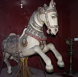 - Horse, wood, Tanjore, South India, 19th Century Ayyappan, Budha, Revanta, Chandra (chariot of 10 white horses), Indra (chariot pulled by a horse named Uchchaihshravas - pictured), Surya (chariot pulled by seven horses or a seven-headed horse), Kubera, Kalki.