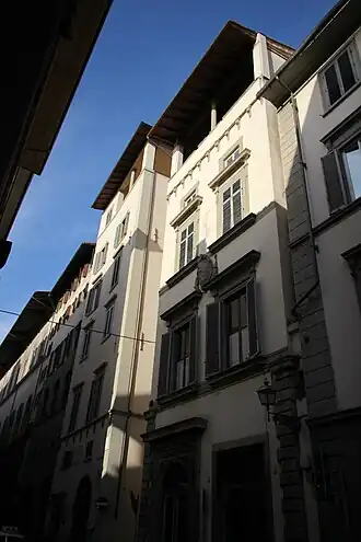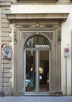 In the 17th and subsequent centuries it underwent significant alterations and, in any case, from the 19th century onwards, it was repeatedly noted for the very elegant sculpted stone decoration that formed the façade of the workshop.[1] Thus, for example, Federico Fantozzi noted in his 1842 guidebook: «The beautiful door, the earthly window and the coat of arms that can be seen above the windows on the first floor deserve to be carefully observed for the beautiful festoons of flowers and fruit that were sculpted there with such diligence and love, that instead of stone they seem real and natural».