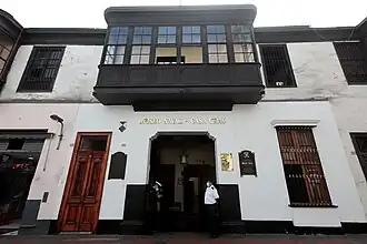 The 18th-century building with a prominent balcony was originally inhabited by Peruvian war hero Miguel Grau along with his wife Dolores Cabero Núñez and their children between 1867 and 1879.[1] Grau and his family inhabited the second floor, while his sister, María Dolores Ruperta Grau, inhabited the first.[2] After Grau's death, his sister's family took care of his ten children, with the exception of her husband, colonel Manuel Gómez, who was killed in action during the battle of Miraflores.[2]