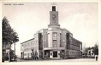 The Casa del Fascio of Varese played a role in the rounding up and deportation of Jews during the Italian Social Republic, under the command of the Schutzstaffel.[10] Following the promulgation of Italy's racial laws, Varese was sited on a key route for Jews fleeing Italy to reach freedom in neutral Switzerland.[11] The head of the Civil Registry Office in the Casa del Fascio, Calogero Marrone, printed fake identity documents to allow Jews and political opponents of the regime to flee to Switzerland, until his arrest on 7 January 1944.[12]