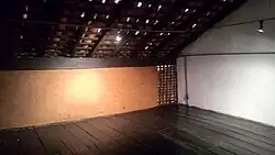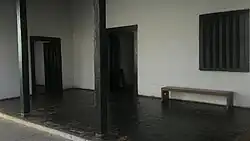 The walls were built using the technique of rammed earth, with a thick and massive appearance. Inside, a central door was structured, with a porch, flanked by two front rooms, in addition to the guest rooms and the chapel, also called the hermitage, which no longer exists.[3] It also opens to a main hall, through which one has access to other rooms or alcoves,[5] and it also has two attics that differ from other examples of the colonial period in that they have only a gable roof.[10] The main hall is a gathering area for the family itself and also for the slaves.[3]