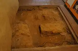 The archaeological research, carried out between 1978 and 1979, led by Marlene Suano, covered strategic points in the house, opening cuts of up to 80 cm in the floor that would serve as guides in the search for architectural evidence that could bring more information about the daily life of those who lived there. The objects ranged from metallic buttons, river shells, coins, glass bottle caps, white crockery, to other fragments such as bones, iron, pieces of charcoal, and charred sticks. In addition, holes were also found in the dirt floor that would correspond to the use of stakes that were probably used as support for hammocks and household utensils. Because of these observations, sections of this environment were purposely left uncovered so that a piece of the rammed earth foundation of an old wall that existed at the site can be seen.[13]