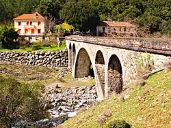 On 24 November 2016 an exceptionally violent storm hit central Corsica and caused widespread flooding. An ice jam on the Casaluna river washed away a centuries-old bridge that spanned it.[3] The bridge carried the D39 road over the lower Casaluna about 3 kilometres (1.9 mi) above its mouth.[4] A temporary bridge was thrown over the river in mid-January 2017, but could not carry the heaviest vehicles. In May 2020 work on a permanent replacement was scheduled to begin. Although some of the local people wanted the old bridge to be rebuilt, that would be vulnerable to a similar storm, which was expected to become increasingly common as the climate changed. Instead a modern bridge was to be built in place of the old one.[3] On 23 July 2020 a public inquiry was launched prior to environmental authorization of the project.[5]