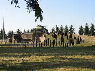 The casemate came under fire in January 1945, when the Hatten area was the scene of fighting between American and German forces during the German Operation Nordwind offensive. German forces included the 25th Panzergrenadier Division and the 21st Panzer Division. American forces, principally the US 14th Armored Division,[7] retreated south to the casemate line and dug in among the casemates. Fighting around Hatten began on 8 January and continued until 21 January, when the Americans pulled back to Haguenau. Casualties among the 14th Armored included 104 dead, 112 missing and 899 wounded.[8] and 83 casualties among the inhabitants of Hatten. The Esch casemate was heavily damaged in the fighting. The area was recaptured by the Tabors Marocains of the French First Army on 18 March 1945.[9]