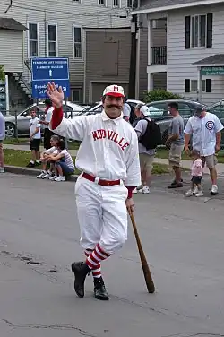 A month after the poem was published, it was reprinted as "Kelly at the Bat" in the New York Sporting Times.[11] Aside from omitting the first five verses, the only changes from the original are substitutions of Kelly for Casey, and Boston for Mudville.[12] King Kelly, then of the Boston Beaneaters, was one of baseball's two biggest stars at the time (along with Cap Anson).[10]: 9