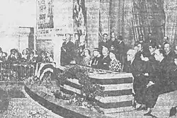 Sangenis spoke violently against the parliamentary democracy,[93] yet it is not known whether and if yes to what extent he was involved in Carlist conspiracy against the Republic, initially designed as an exclusive Carlist project and then amalgamated into an alliance with the military.[94] None of the sources consulted mentions him as taking part,[95] though later the revolutionary tribunal claimed that he "ajudà amb diners al cop feixista", supported the Fascist coup with money.[96] During the July rebellion he was in Lérida, where the rising failed. At unspecified time in late July or early August he was detained. On August 22 he was delivered for a trial by a newly established Tribunal Popular, which has just commenced its sittings. The tribunal was dominated by the radical left-wing militants; its president Francesc Pelegrí Garriga[97] from POUM and the prosecutor José Larroca Vendrell[98] from CNT were railway workers.[99] Sangenis was charged not only with financing the coup, but also with pressing repressive legislation in the aftermath of the 1934 revolution.[100] Following a very brief session, described by one historian as a "kangaroo trial",[101] Sangenis was sentenced to death; reportedly this was the first death sentence passed by this tribunal.[102] Half an hour later he was shot at the local cemetery.[103] His property was immediately expropriated.[104] Pelegrí and Larroca died on exile in France; one unnamed individual complicit in the killing of Sangenís, a FAI member, was later apprehended and executed by Francoist authorities.[105]