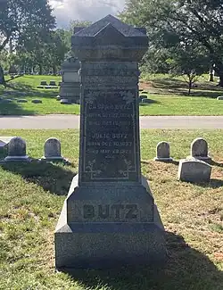 Butz died in Des Moines, Iowa in 1885, at the age of 59.