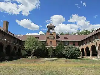 The Castañeda Hotel is a historic railroad hotel located in Las Vegas, New Mexico.[2] It was built in 1898 and 1899 by the Atchison, Topeka and Santa Fe Railway, and was operated by the Fred Harvey Company until 1948. After being mostly vacant for many years, the hotel was restored and reopened in 2019. The Castañeda was listed on the New Mexico State Register of Cultural Properties in 1974[1] and the National Register of Historic Places in 1979 as a contributing property in the Railroad Avenue Historic District.[2] It is located adjacent to the Las Vegas railroad station.