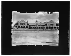 In the 1890s, the Atchison, Topeka and Santa Fe Railway operated a small frame boarding house called the Depot Hotel where passengers could eat during lunch stops in Las Vegas. In 1898 and 1899, the railroad built a new and much larger hotel, the Castañeda, which was operated by the Fred Harvey Company.[3] The Castañeda was the first of what would eventually be dozens of Harvey hotels along the Santa Fe lines,[4] including the Alvarado in Albuquerque, New Mexico, El Tovar at the Grand Canyon, El Garces in Needles, California, and Casa del Desierto in Barstow, California, among others. The hotel was designed by Frederick Roehrig and officially opened on January 1, 1899. It was named after Pedro de Castañeda de Nájera, who chronicled the 1540 expedition of Francisco Vázquez de Coronado into New Mexico. The cost of construction was $110,000, plus another $30,000 for furnishings.[5]