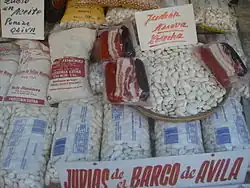 Castilian-Leonese cuisine is built around stews and asados, as well as a large assortment of desserts. The major dishes in this cuisine are of veal, morcillas, legumes (such as green beans, chickpeas, and lentils), simple soups with garlic, and select wines. Other major dishes include pork and embutidos, found all over Castile and León, but that reach their peak in Salamanca (specifically in Guijuelo and Candelario); several types of empanadas; roast lamb and suckling pig; morcilla; haricots; cocido maragato (eaten in reverse order); botillo of Bierzo; jamón from Guijuelo; and queso castellano (a sheep's-milk cheese).