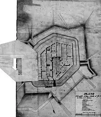 The Castillo de Santo Domingo de Atarés is a small hexagonal hilltop fort in Havana built in 1767. Work commenced in 1763, around the same time as initial work on Castillo del Príncipe. It is located on La loma de Soto above the harbour.[1][2] In 1982, the fort was inscribed on the UNESCO World Heritage List, along with other historic sites in Old Havana, because of the city's importance in the European conquest of the New World, its fortifications, and its unique architecture.[3]