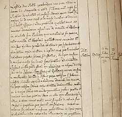 Bishop of Wrocław, Tomasz II, founded a collegiate church at the castle chapel in 1288, where three canons and several vicars served.[2][3][5][10][11] The first canon at the castle church was Tylco, who served from 1293 to 1305.[3][11] He is mentioned in documents of Duke Mieszko I and Przemysław of Racibórz. After 1305, a canon named Godin is mentioned in documents. Przemysł I had a chaplain named Jeszko, who in 1295 was also titled as a canon, and later in 1299 as the pastor of Rybnik. Documents from 1290 also mention a chaplain named Otto. From the names of the clergy, it can be inferred that they originated from Western Europe.[3] The bishop and the duke endowed the canon prebends with tithes collected from villages belonging to the Duchy of Cieszyn and Racibórz.[12]