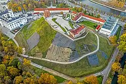 Castle Hill (Lithuanian: Pilies kalnas) or Gediminas' Hill (Lithuanian: Gedimino kalnas) is a hill in Vilnius, Lithuania at the confluence of Neris and Vilnia rivers on the left side of the Vilnia. It is best known as the location of the Gediminas' Tower, a signature landmark of Vilnius, a remnant of the fortified Upper Castle dating to the Middle Ages. Castle Hill is part of the Vilnius Castles Cultural Reserve.[1]