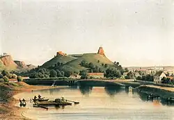 The hill was originally formed by erosion, but has been reshaped by man. It has been separated from the southwestern part of the Sapieginė erosive deposit by a canal, which forms the mouth of the Vilnia.[1] Mindaugas Pakalnis, the Chief architect of Vilnius, remarked that hill's erosiveness contributed to its defensive value, because it is difficult to climb the collapsing slopes.[2]