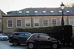Between the central building and the weaving shed is the central range, probably built in 1770 as the owner's house, but converted into a workshop and warehouse by the 1820s. The mill building is constructed of rendered stone and brick, and has a stone slate roof with courses of Westmorland slate, a stone ridge, and stone gable coping and a kneeler on the right. There are two storeys and four bays. The windows are sashes, some horizontally-sliding, and some in architraves.[1][7]