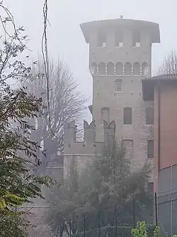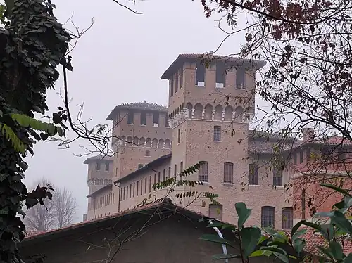 The first construction of a castle dates back to the end of the 9th century due to the continuous raids carried out by the Hungarians at that time,[2] being remembered in the chronicles of the time as a colossal stronghold, called munitissimum castrum. A wide moat equipped with drawbridges surrounded the fortress and encircled its forts. It is thought of the ancient presence of an underground road that, starting from the castle, connected Pontevico to nearby Robecco d'Oglio.[3]