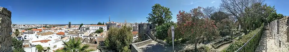 The Castle of Tavira (Portuguese: Castelo de Tavira) is a medieval castle located in the parish of Santiago, Tavira municipality, Faro district of Portugal.[1] In a dominant position over the mouth of the river Gilão, the settlement has developed as an important sea port since antiquity, with its predecessors dating back to the 8th century BC, passing through the hands of Phoenicians, Greeks, Celts, Carthaginians, Romans, Moors and the Portuguese crown.[2]