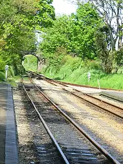 Castletown Railway Station (Manx: Stashoon Raad Yiarn Valley Chashtal) is an intermediate station on the Isle of Man Railway on the Isle of Man forming part of sole remaining section of the once extensive network that operated across the island. The station is the busiest of the railway's intermediate stations, being the closest to a number of local visitor attractions. In peak season service trains often pass here, making the station one of the railway's more active stopping places. The station occupies a site within walking distance of the main town and is in close proximity to the local playing fields.