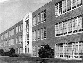 By the mid-20th century, the original frame building was all the more overcrowded and outdated. However, with now enough funding for partial upgrades to commence, the school began to modernize with the construction of a new auditorium and cafeteria wing in 1949. This was followed by a three-story brick school building in 1951 that replaced the earlier structure, after school construction bonds were issued in 1950.[1][4]