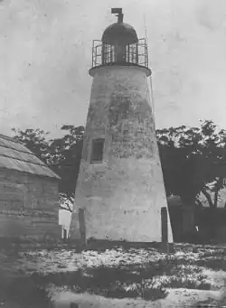 The first lighthouse at this location was erected in 1831, following an appropriation in 1827.[1] Construction was delayed by the need to survey and acquire land. The contract was given to Winslow Lewis, who also constructed the Pass Christian Light under the same contract.[3] Lewis subcontracted construction of the Cat Island tower to Lazarus Baukens, who erected a conical brick tower to the same design as that used for the Pass Christian Light.[1] An 1854 inspection, however, revealed that the structure was set directly on the sand, with no foundation whatsoever.[3] It was provided with the lamp and reflector arrangement typical of such early lights. This was replaced in 1857 with a Fresnel lens, and in 1859 a new lantern was constructed.[3]