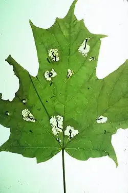 Catastega aceriella, the maple trumpet skeletonizer moth, is a moth of the family Tortricidae. It is found in North America from southern Ontario and Nova Scotia to North Carolina and Tennessee.