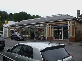 The town's first station was originally opened on 5 August 1856 by the Caterham Railway. It was closed on 1 January 1900 by the South Eastern and Chatham Railway, which opened a new station of the same name on an adjacent site that day.[4] The site of the original station is now occupied by a supermarket and the present station's car park. The line was electrified (on the 660 V DC system) by the Southern Railway in March 1928.[5]