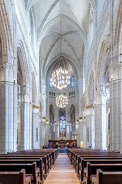 Between 1496 and 1861, the building operated as a collegiate church, and it was that year when it was declared a cathedral. It has a Latin-cross plan, with a wide transept crossing and circular apse containing several chapels.