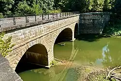 Catoctin Creek is a 27.9-mile-long (44.9 km)[1] tributary of the Potomac River in Frederick County, Maryland, US. Its source is formed north of Myersville. In Myersville, it merges with the Little Catoctin Creek at Doub's Meadow Park.[2] From there, it flows directly south through Middletown, and the southern Middletown Valley for the entire length of the stream collecting several smaller tributaries. It makes a crossing with the Chesapeake and Ohio Canal at the Catoctin Aqueduct, one of just 11 of these structures to survive.[2] Catoctin Creek enters the Potomac River east of Brunswick.