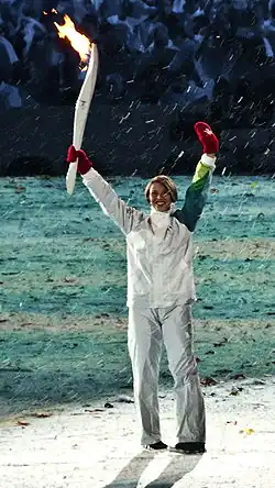 Born in Saskatoon, Saskatchewan, of Scottish ancestry, Le May Doan won the Olympic 500 m title at the 1998 Winter Olympics in Nagano, Japan.[2] She repeated the feat at the 2002 Winter Olympics in Salt Lake City, Utah, giving rise to the title "the fastest woman on ice".[1] At the Nagano Olympics, she also won a bronze in the 1,000 m. She was World Sprint Champion 1998 and 2002 and World Champion 500 m 1998, 1999, and 2001, and won a 500 m bronze in 2000. She also won the 500 m World Cup 4 times (in 1998, 1999, 2001, and 2003) and the 1,000 m World Cup once (in 1998). She was Canada's flag bearer at the Winter Olympics twice, for the 1998 Nagano Olympics closing ceremony and the opening ceremony of the 2002 Salt Lake City Olympics.